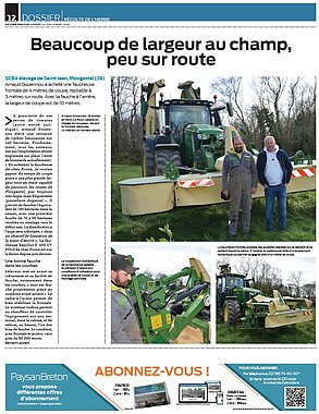Découvrez dans ce reportage du journal Paysan Breton pourquoi Arnaud Gouennou a fait le choix de la faucheuse frontale EasyCut F 400 CV Fold.
