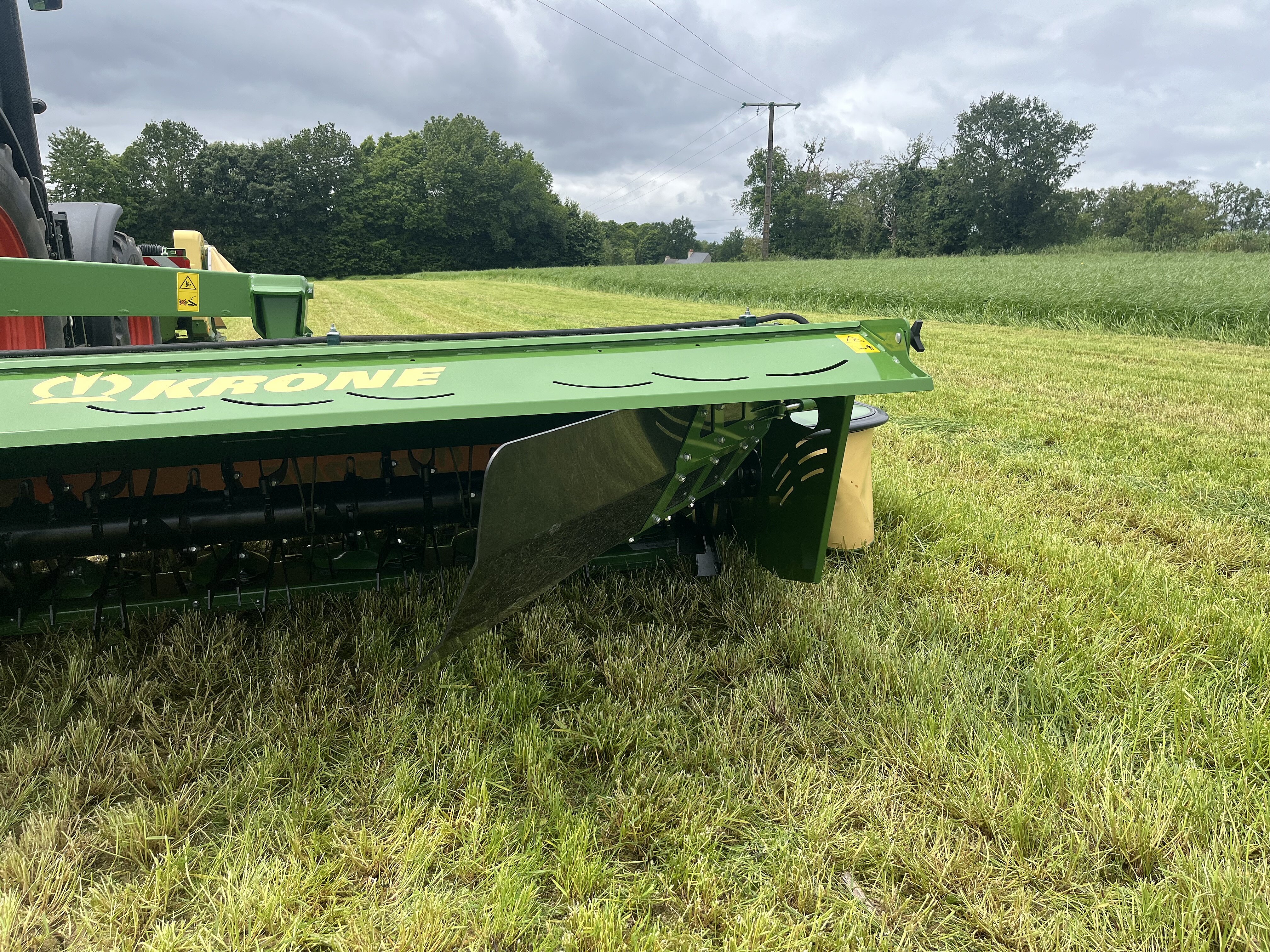 Les utilisateurs de ce modèle arrière porté pourront eux-aussi s’adapter plus facilement aux volumes, aux types de fourrages ainsi qu’aux différentes solutions de reprises grâce à la nouvelle option «KRONE GrassMove». Il s’agit d’une tôle déflectrice située à droite de la sortie du conditionneur. Pilotée hydrauliquement depuis la cabine à l’aide d’un distributeur double-effet, elle permettra à l’utilisateur de venir resserrer son andain contre celui de la frontale ou au contraire écarter son andain sur la largeur du conditionneur sans avoir à descendre de la cabine pour venir régler la position de volets ou de tôles déflectrices en fonction des conditions ou de son souhait d’andain. Il sera alors possible de créer des andains, en combinaison avec une faucheuse frontale de 3,20m, d’une largeur théorique de 3 à 4,50 m. A la clé, c’est plus de confort et de sécurité pour l’opérateur, et une qualité de fourrage préservée.