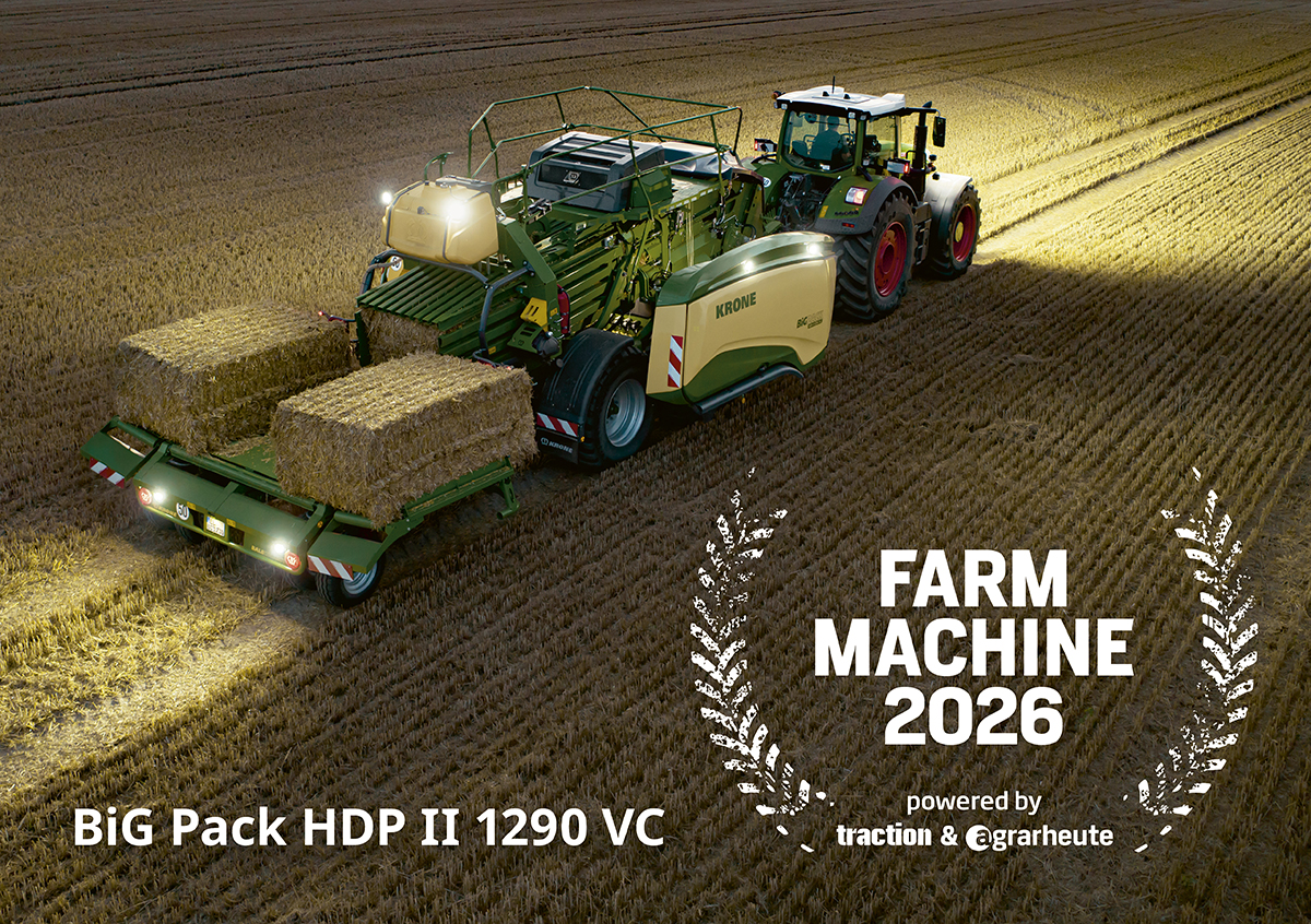La nouvelle presse à balles cubiques KRONE BiG Pack HDP II 1290 (VC) remporte la première place et le prix FARM MACHINE 2026 dans la catégorie récolte de fourrage.