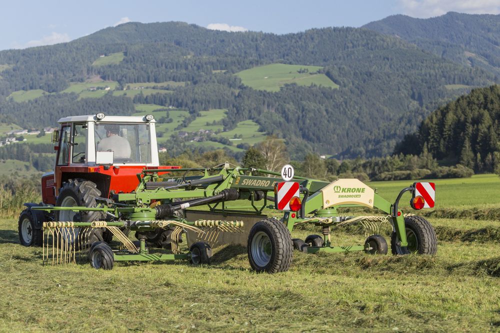 Krone présente à la ZLF de Munich trois nouveaux andaineurs, les modèles Swadro TC 640, Swadro TC 930 et Swadro TC 1000 et enrichit de façon conséquente son offre d’andaineurs centraux. Avec le Swadro TC 640, Krone propose un modèle intéressant en largeurs de travail de 5,70 m à 6,40 m et des largeurs d’andainage de 1,0 m à 1,70 m. Le Swadro TC 930 (largeur de travail de 8,10 m à 9,30 m) et le Swadro TC 1000 (largeur de travail de 8,9 m à 10,0 m) sont des machines idéales pour des rendements horaires élevés.
