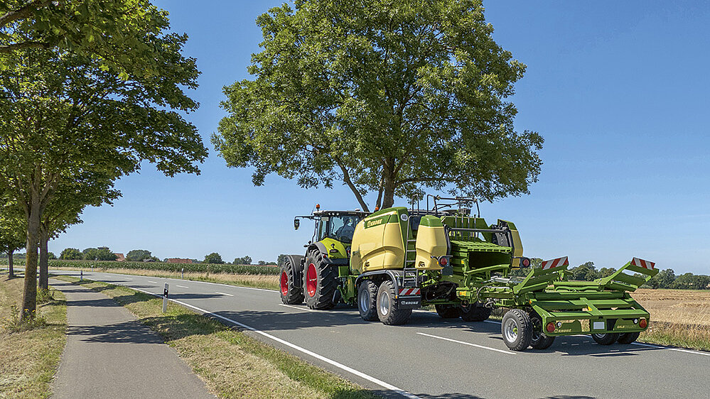 KRONE BaleCollect permet d’économiser du temps et de l’argent. BaleCollect regroupe jusqu’à trois balles cubiques d’une largeur de 1,20 m. Grâce à différents modes de dépôt, les balles peuvent être déposées dans le champ de façon optimale pour les opérations qui suivent. Les temps de chargement après le pressage sont ainsi considérablement réduits, de même que les passages et la compression du sol. Le timon télescopique unique en son genre assure une manipulation simple et sûre sur route. BaleCollect est conçu pour répondre au débit élevé et à la densité d’une BiG Pack KRONE.