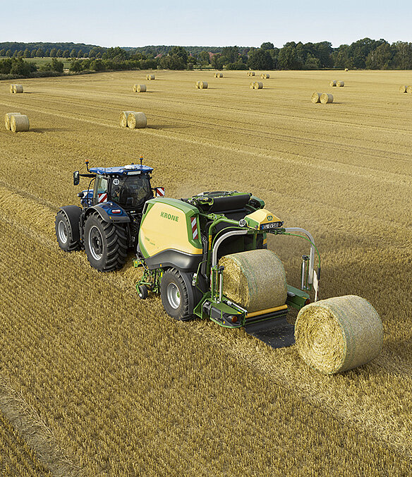 KRONE CombiPack HDP – pour redéfinir les limites : La presse à balles rondes performante KRONE CombiPack HDP pose de nouveaux jalons en matière de cadence. Grâce à sa forte densité de pressage et à des balles de forme toujours homogène, elle permet une exploitation efficace sur de longues durées. Le mécanisme de coupe courte innovant autorise un réglage précis des longueurs de coupe et garantit de toujours obtenir la longueur optimale. La commande innovante, les processus automatisés et l'efficacité maximale garantissent efficience et précision. Le changement rapide entre filet et film permet également une utilisation particulièrement confortable et polyvalente pour le traitement de n'importe quelle matière récoltée.