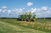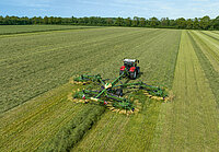 Le nouvel andaineur KRONE Swadro TC 1570 avec son concept unique de châssis en V se distingue par un rendement élevé, un silence de fonctionnement exceptionnel et un confort de travail maximum